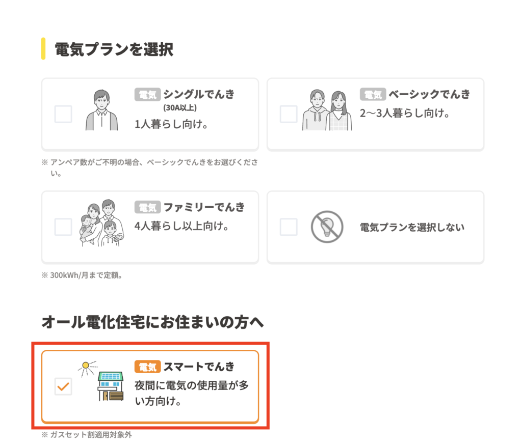 また、スマートでんきはオール電化住宅向けの料金プランですが、特別な契約条件はありません。