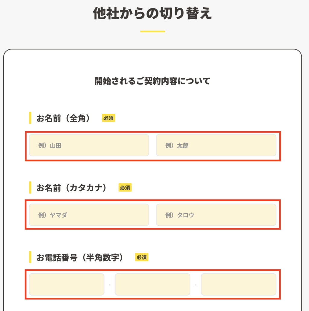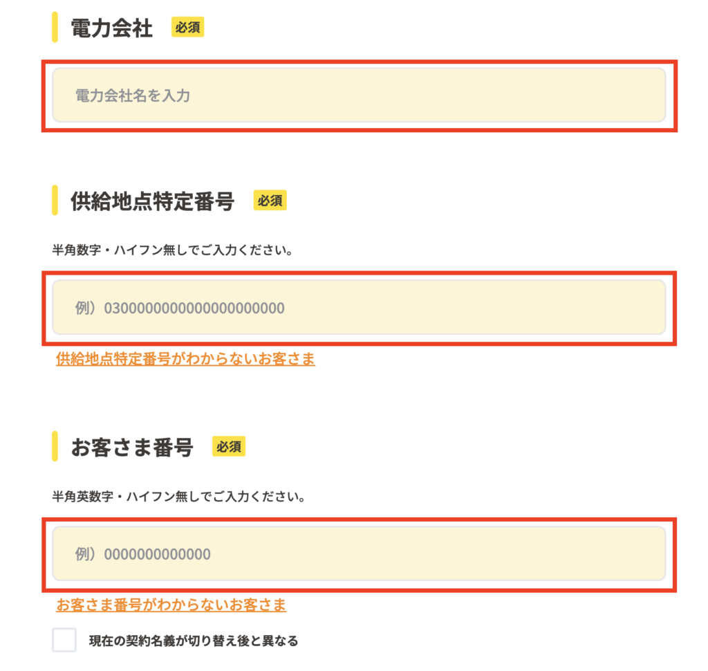 この際に、事前準備しておいた現在契約中の電力会社から発行される、お客さま番号や供給地点特定番号の入力が求められます。