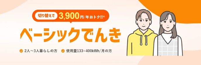 月の電気使用量が133kWh以下ならシングルでんき、それ以上ならベーシックでんきがおすすめです!