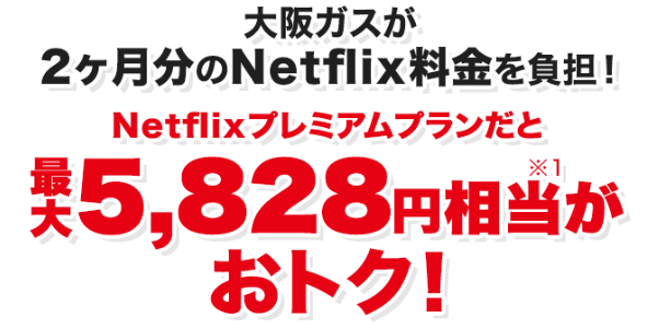 大阪ガスの新生活応援プランでは、Netflixが実質2か月分無料で楽しめる特典を用意しています。