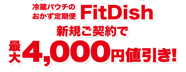 - 冷蔵宅配食「FitDish」新規申込で初回2ヶ月(最大4,000円)値引き!