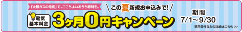 大阪ガスでは対象のプランに新規加入すると、基本料金3ヶ月が無料になるキャンペーンを開催中です。