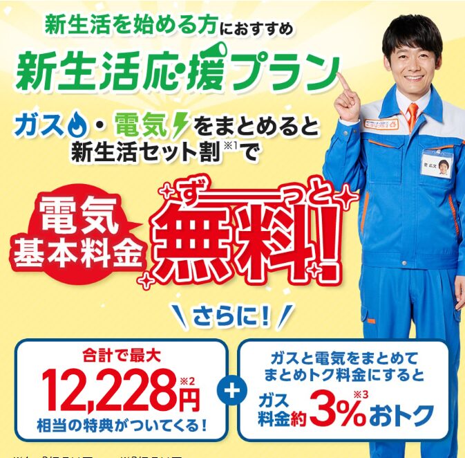 - ガスとまとめると新生活セット割で電気基本料金がずっと無料