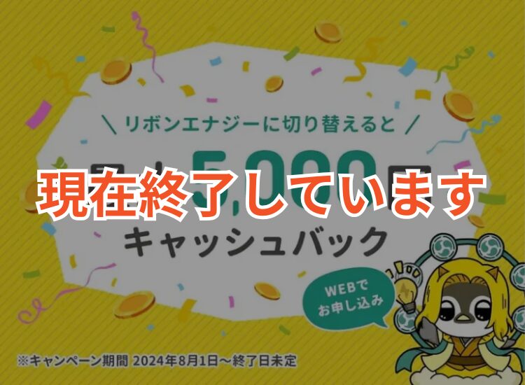 2024年8月1日〜2025年8月31日の期間、リボンエナジーでは最大5,000円のキャッシュバックキャンペーンを実施していました。