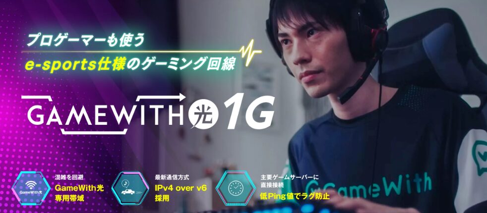 一般的な通信業者ではなく、ゲーム情報メディア「GameWith」を運営する企業が提供している光回線のサービスのため、よりゲーマー向けに作られているのが特徴。