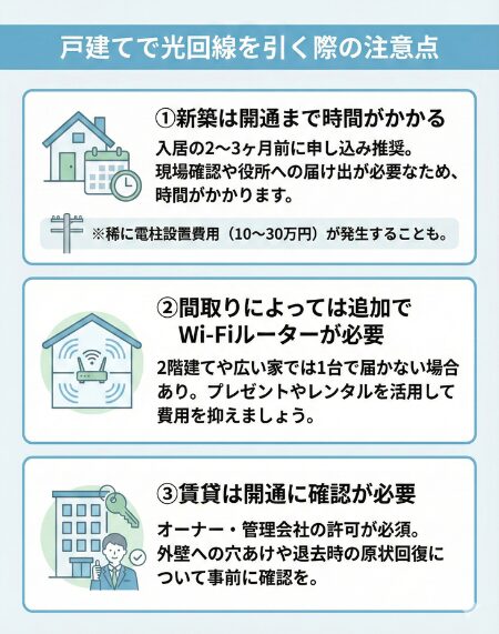 最後に、戸建てで光回線を引く際に疑問となりそうなところをまとめました。