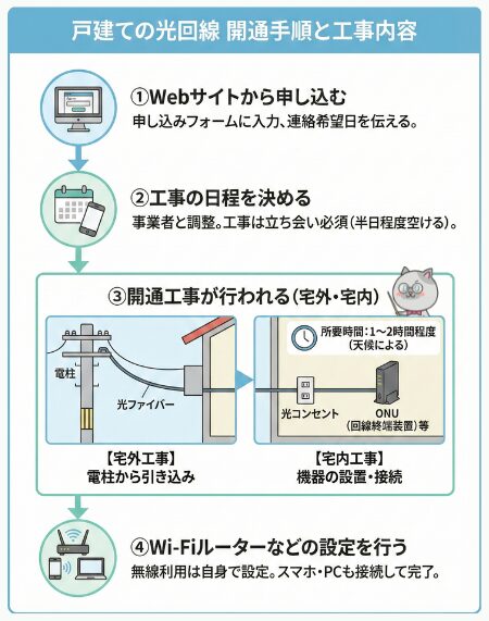 - 2 戸建てで光回線を開通する手順や工事内容を解説