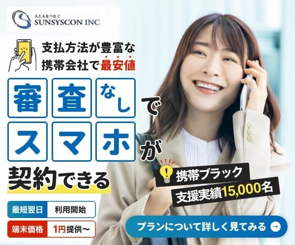 審査なしで携帯ブラック・金融ブラックでも契約できるのは、サンシスコンの最大のメリットだといえるでしょう。