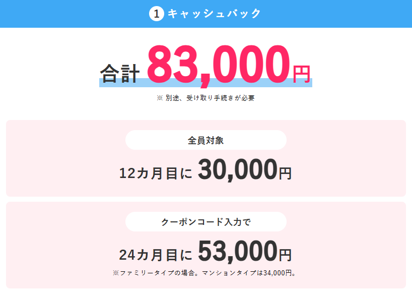 「高額キャッシュバック特典」が受け取れる